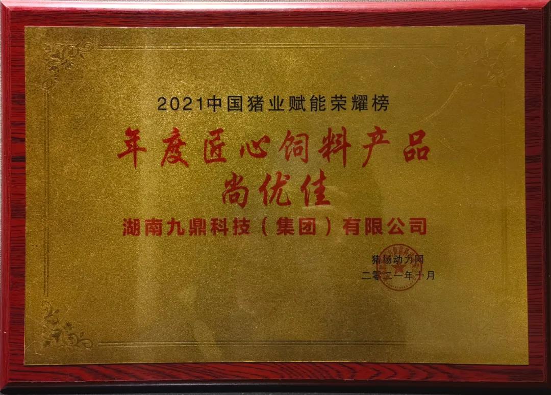 在頒獎典禮上,集團技術研發中心總經理江書忠榮獲“年度領軍人物”,集團教槽料產品“尚優佳”榮獲“年度匠心無抗飼料產品獎”。這是行業以及社會各界對九鼎集團研發實力以及產品品質的高度認可及肯定。