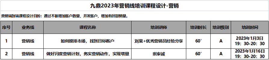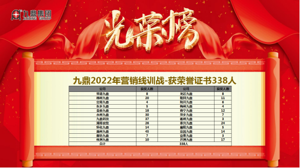 九鼎2022年營銷訓戰為期4個月,共舉辦12次,建立18門課程,6個營銷案例,共有542位營銷精英參與,開展9次培訓考核。