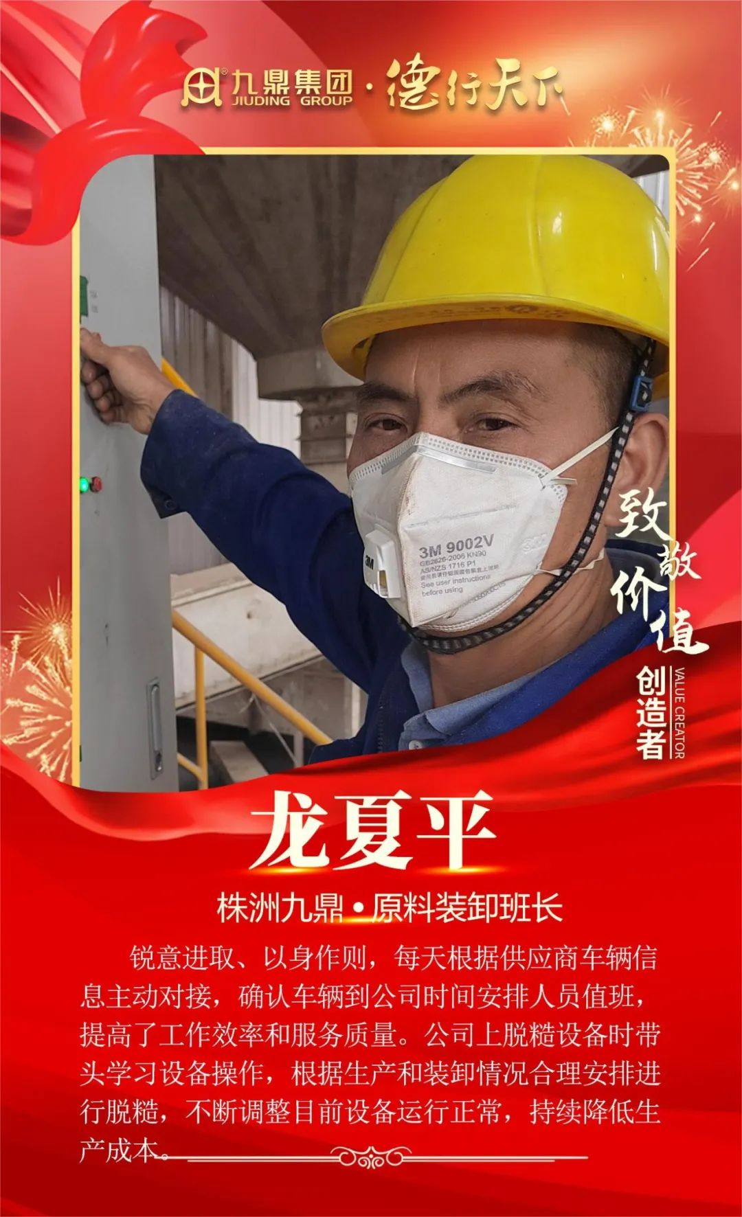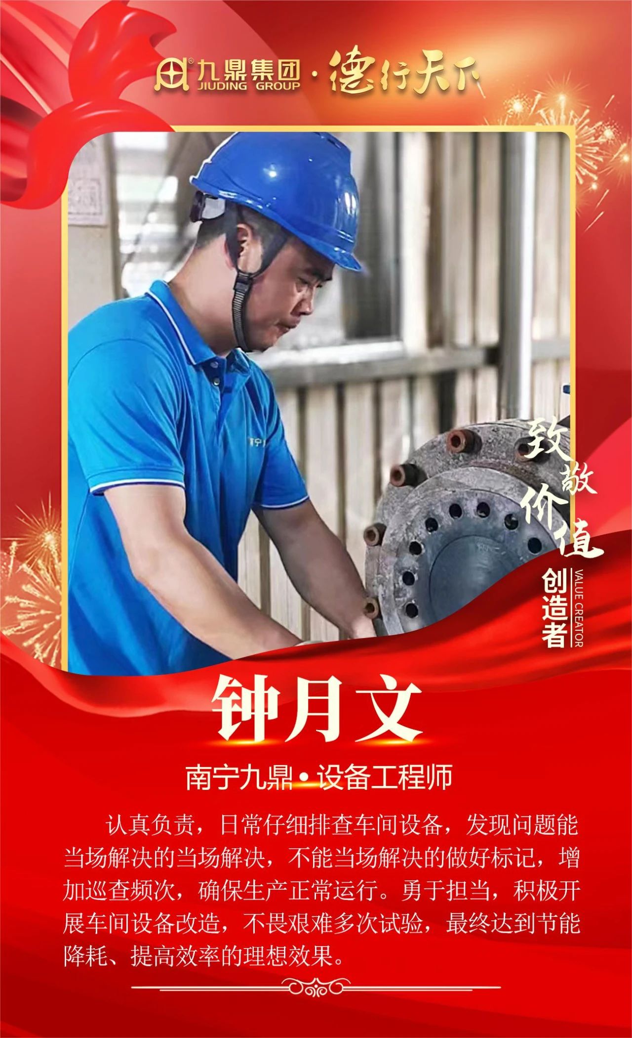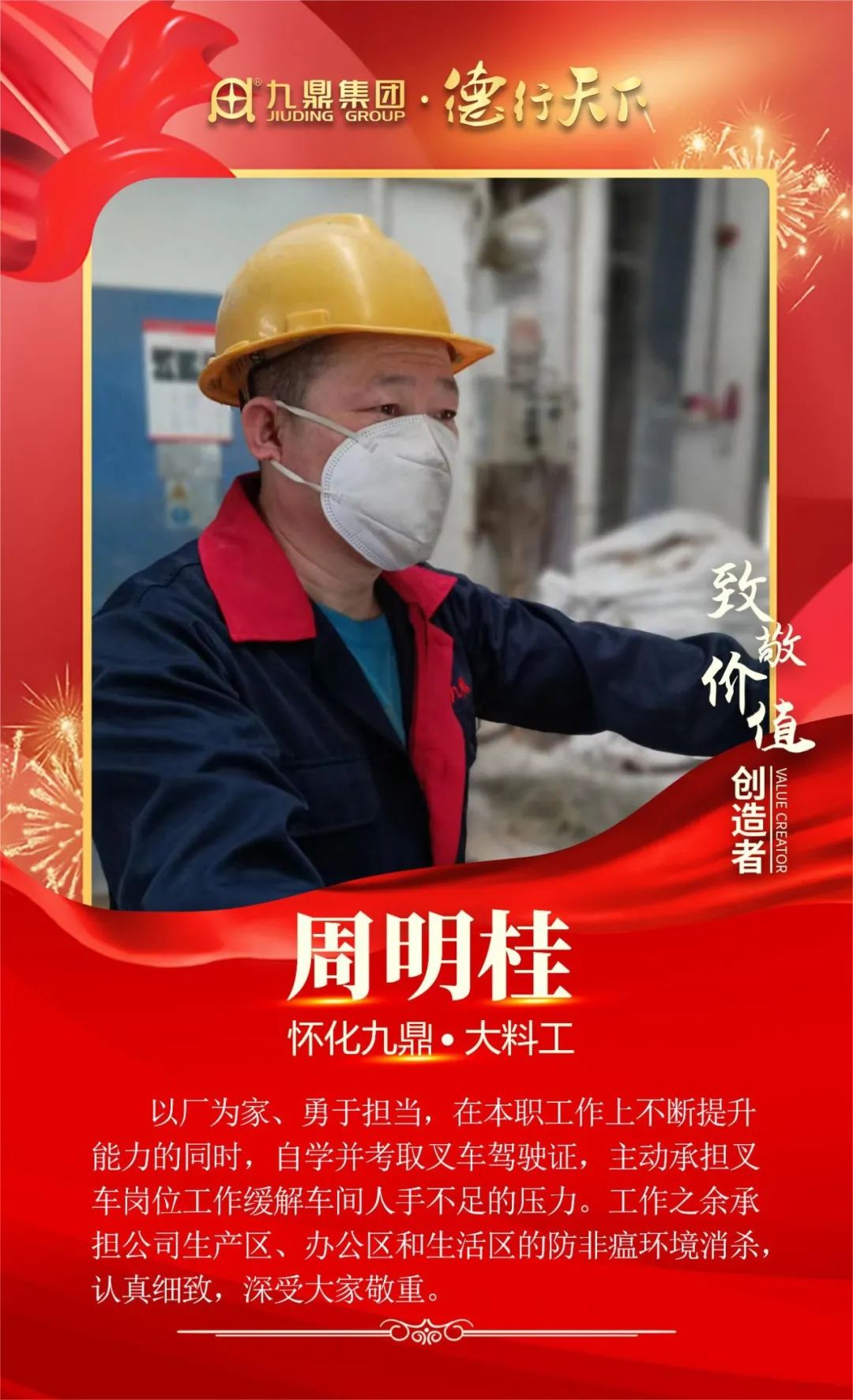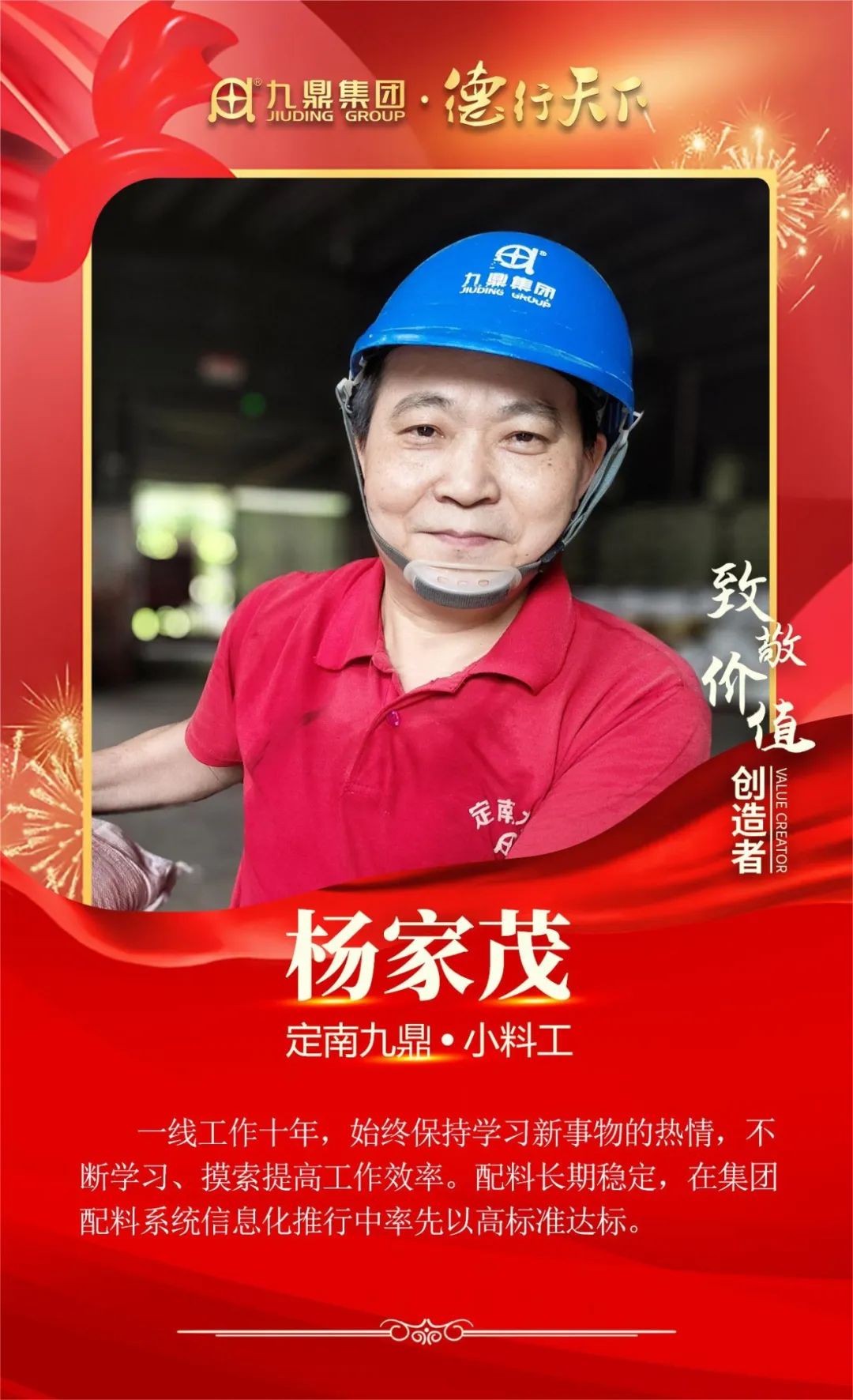 用汗水澆灌收獲,以實干篤定前行。為大力弘揚九鼎文化,鼓舞激勵廣大九鼎人學習標桿、趕超先進,集團總部組織開展了“致敬價值創造者”勞動模范評選。經嚴格篩選考察,授予楊家茂等30名員工2023年度“勞動模范”稱號。