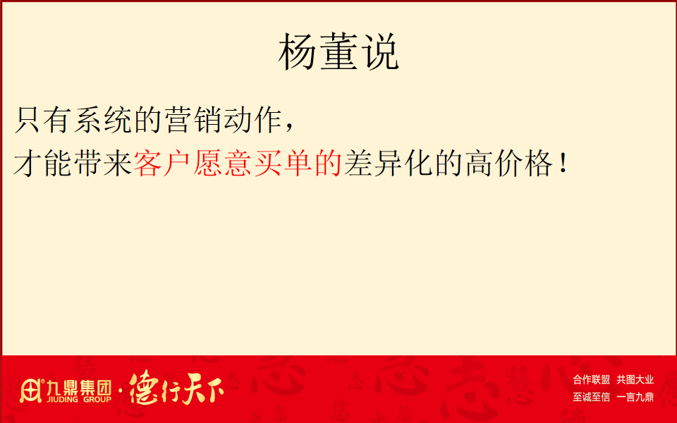 集團副總裁尚軍先生發表熱情洋溢的致辭,分享了楊林董事長關于系統性營銷的重要論述:“只有系統的營銷動作,才能帶來客戶愿意買單的差異化的高價格!”同時,他也強調了“定風波,基本功,不會錯”的經營哲學,即在復雜多變的市場環境中,企業要保持穩定發展,必須具備扎實的基本功。