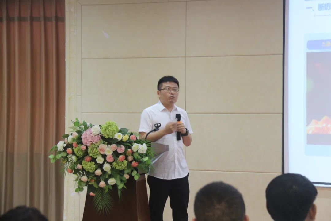 此外,集團產品中心產品經理李劍先生向與會者詳細介紹了九鼎斷奶料產品的先進設備、產品工藝、質量控制和市場優勢。他的介紹讓大家對九鼎斷奶料產品有了更深入的了解,這不僅增強了大家對九鼎斷奶料產品的信心,也激發了大家共同努力,致力于打造中國斷奶料的第一品牌的決心。