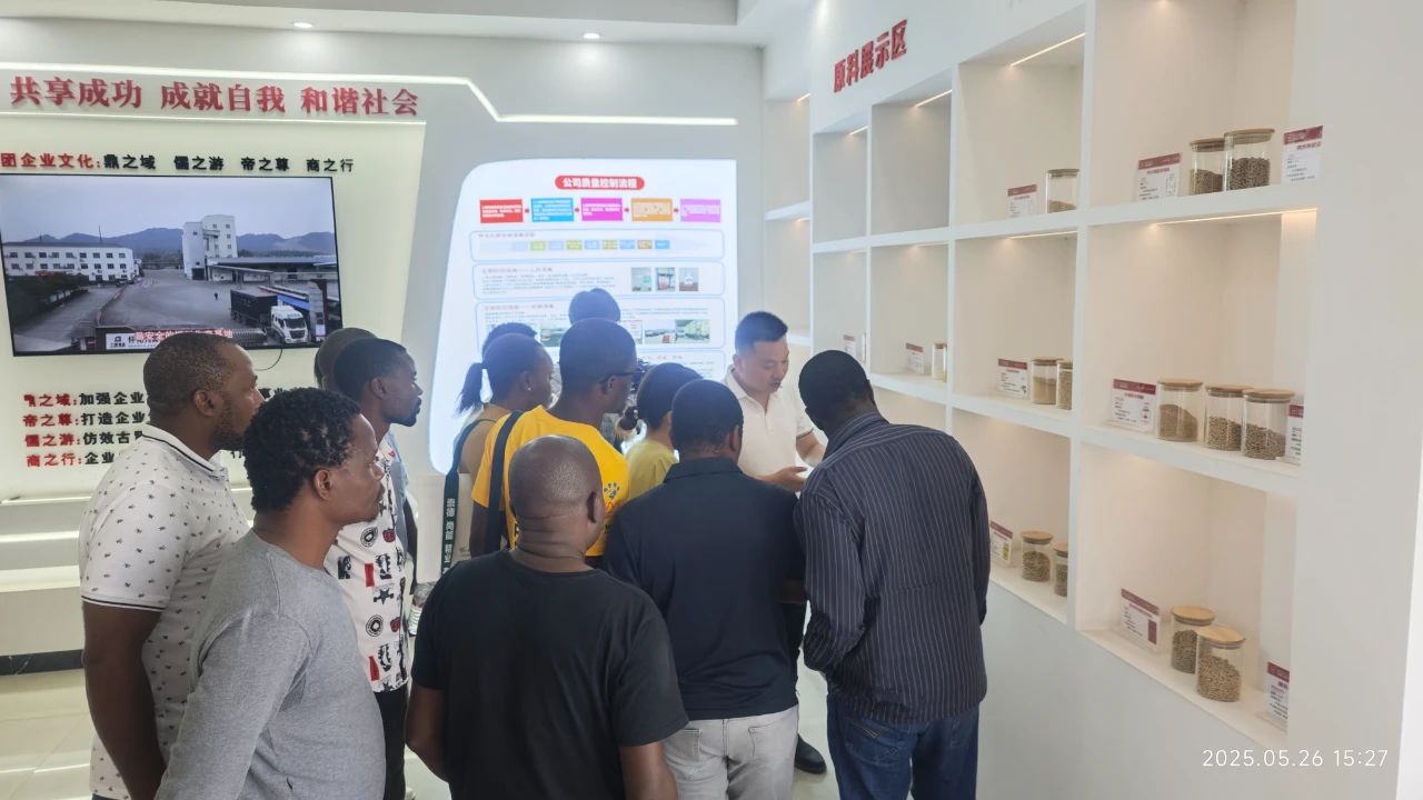 2025年5月26日,在懷化職業(yè)技術(shù)學(xué)院張光有老師的帶領(lǐng)下,來自非洲國家馬拉維的10名農(nóng)業(yè)技術(shù)培訓(xùn)班學(xué)員來到湖南九鼎科技(集團(tuán))有限公司子公司-懷化九鼎參觀交流。此次交流活動旨在促進(jìn)中非農(nóng)業(yè)技術(shù)交流與合作,雙方圍繞大宗原料采購、飼料生產(chǎn)工藝及質(zhì)量管控展開深入溝通與交流。